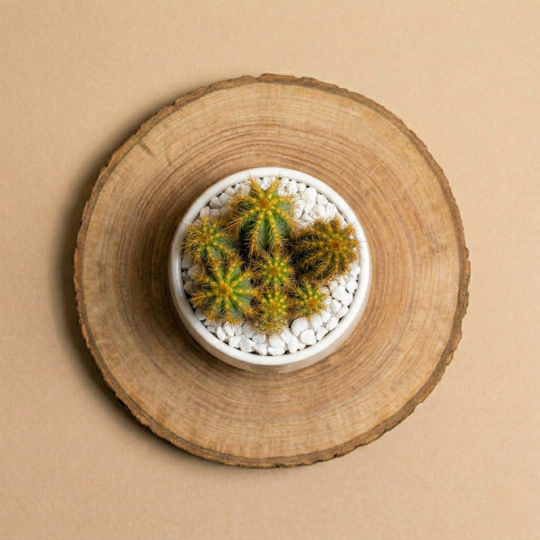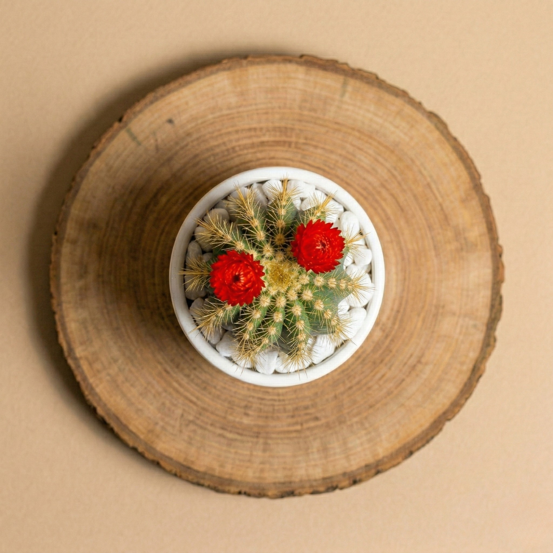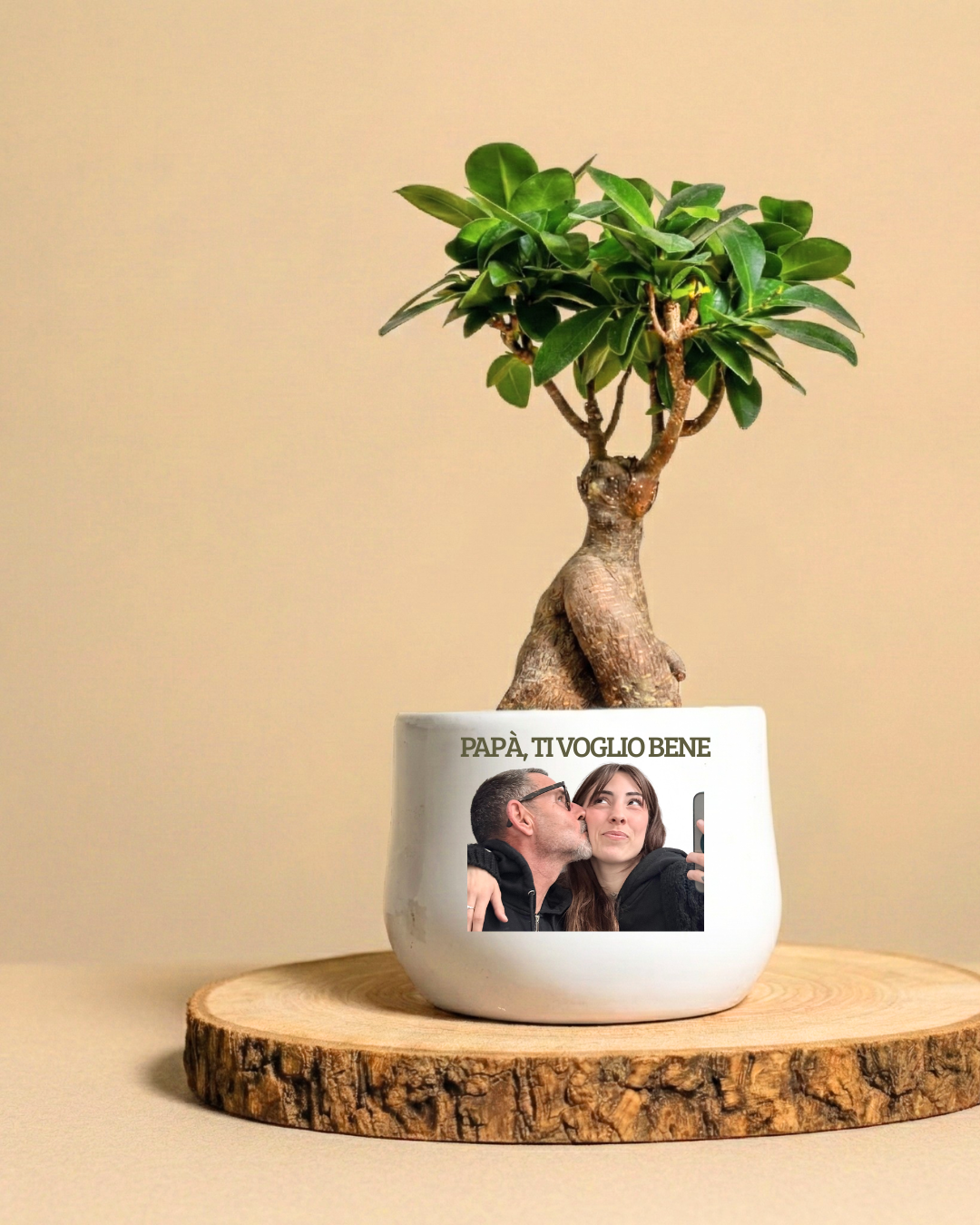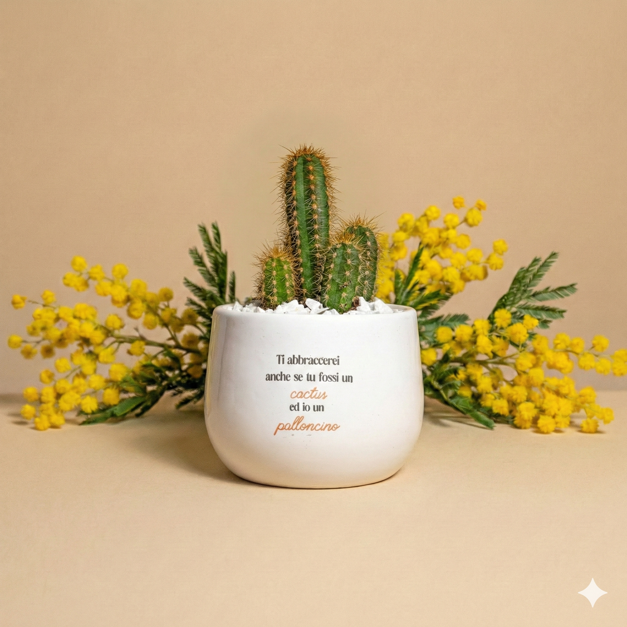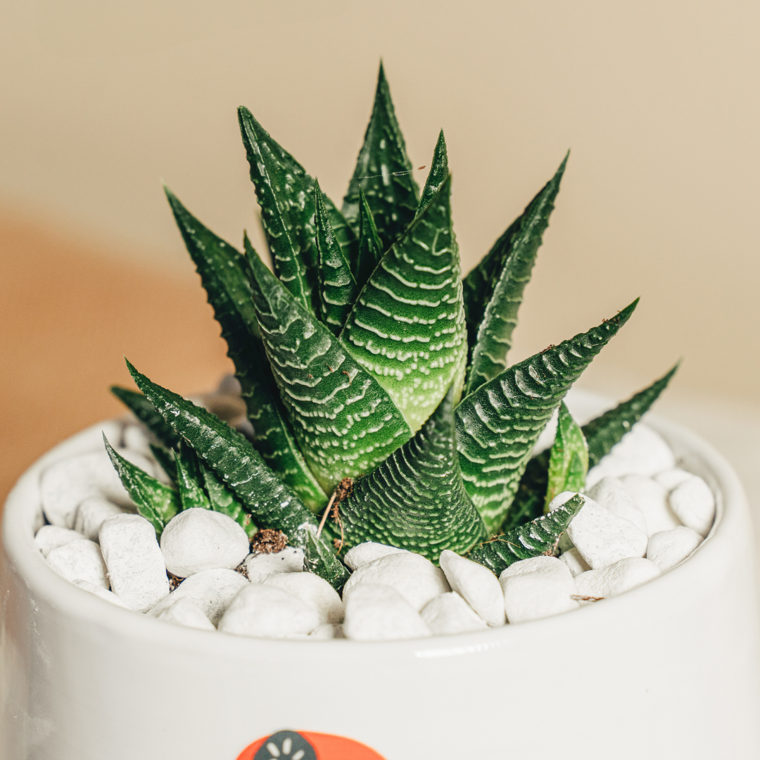 La piantina è riposta con cura nel vaso scelto, con terreno di qualità e guarnizioni per renderla elegante e non macchiare