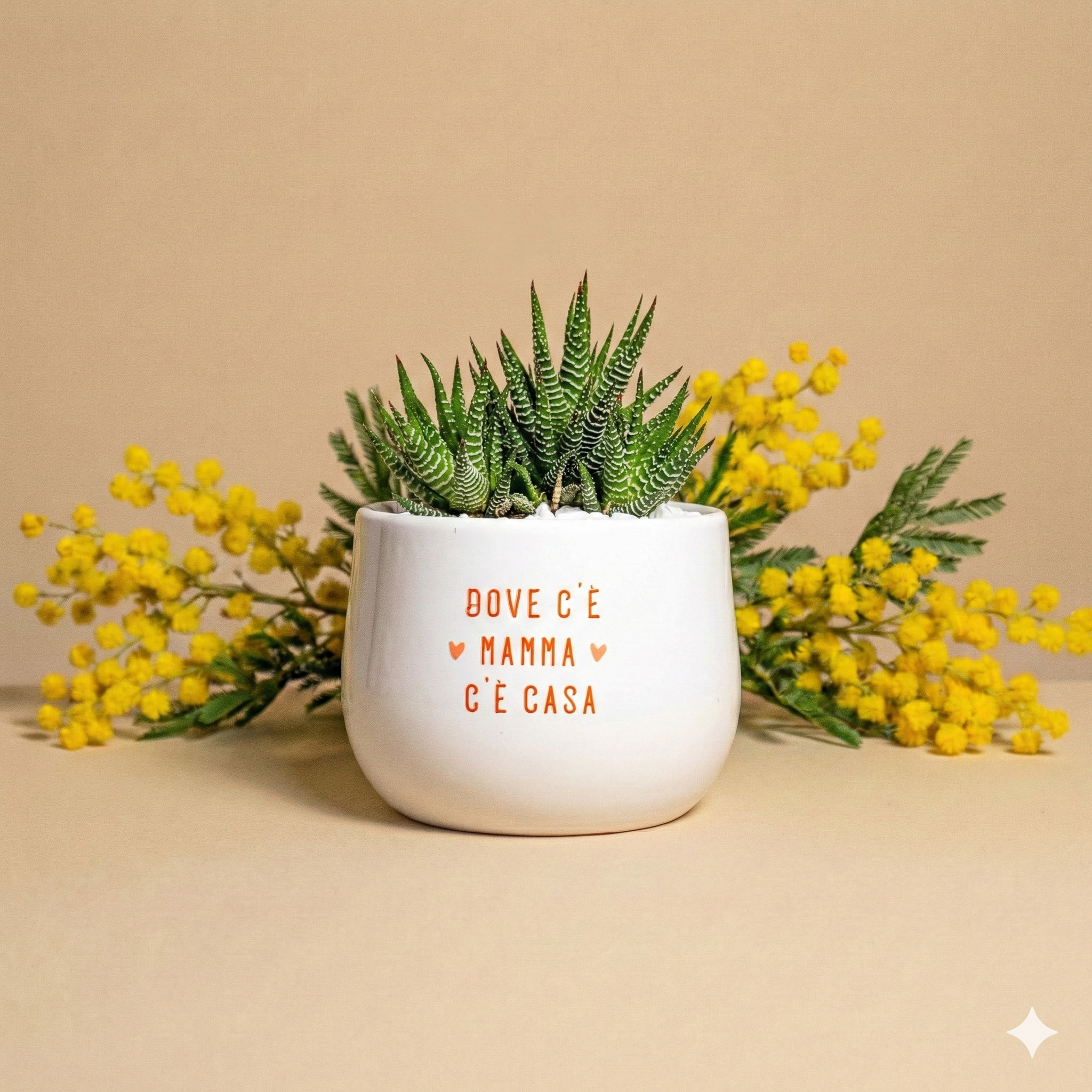 Rendi speciale la giornata di tua mamma con il nostro vaso di ceramica con piantina grassa vera! Un regalo che unisce amore e natura. Festeggiamo insieme la bellezza dell'amore materno!
