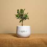 Casa è dove risiede il cuore. Questo elegante vaso in ceramica, con la scritta Home, racchiude un raffinato ulivo, simbolo di pace e armonia. Perfetto come regalo di Pasqua, un dono originale e duraturo, oppure un tocco di natura per la propria casa.